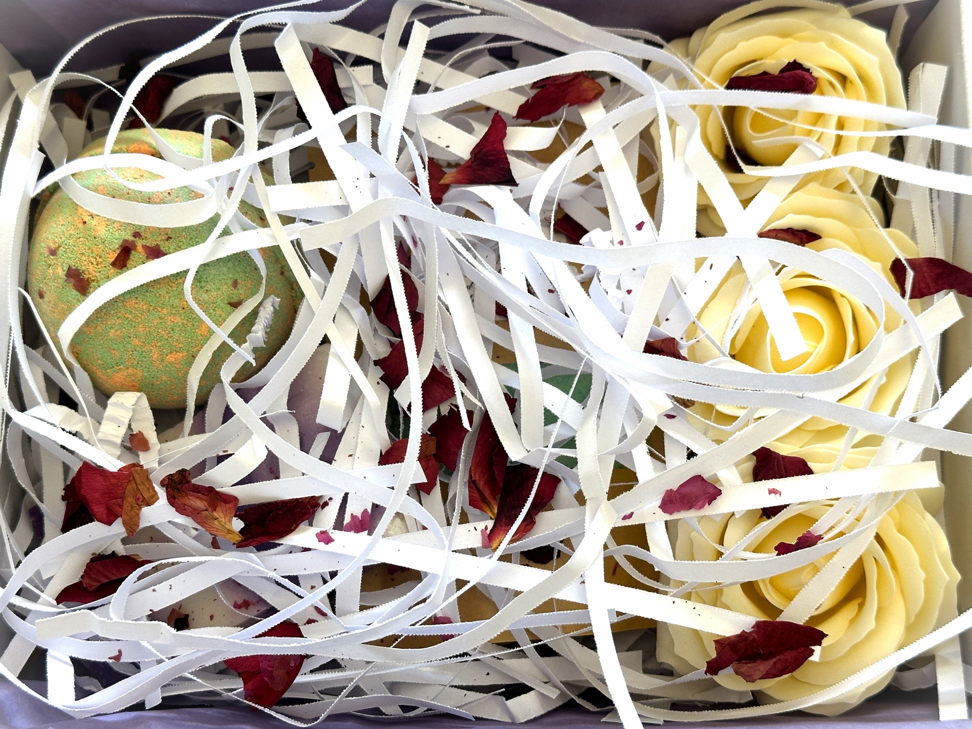 Rose Soap Flowers - Peal as many petals as please and sprinkle them into the tub with warm water after the Bath Potion resolves. We recommend up to one rose per tub. Relax and witness the petals dissolve, transforming the water into a colorful oasis.